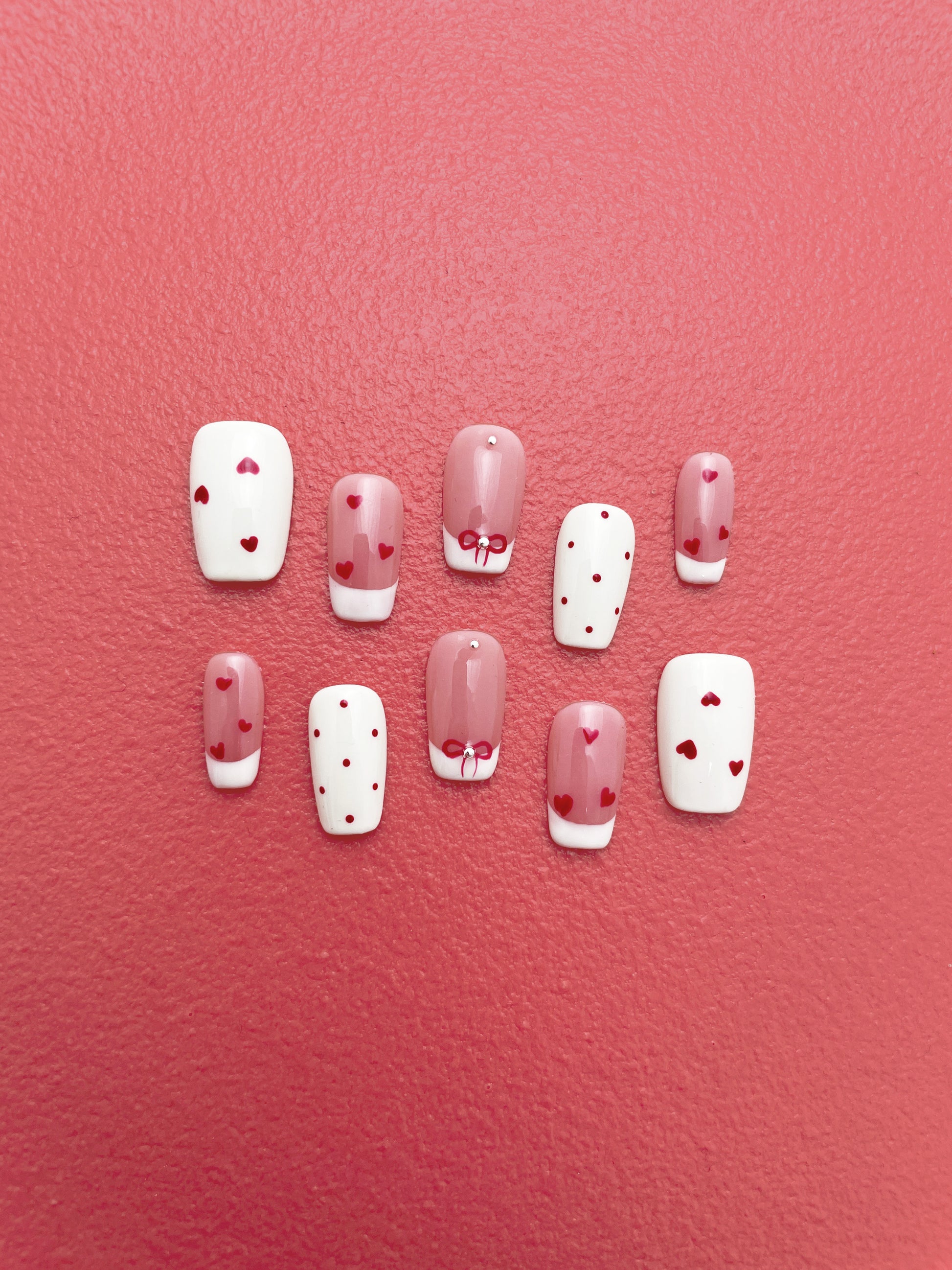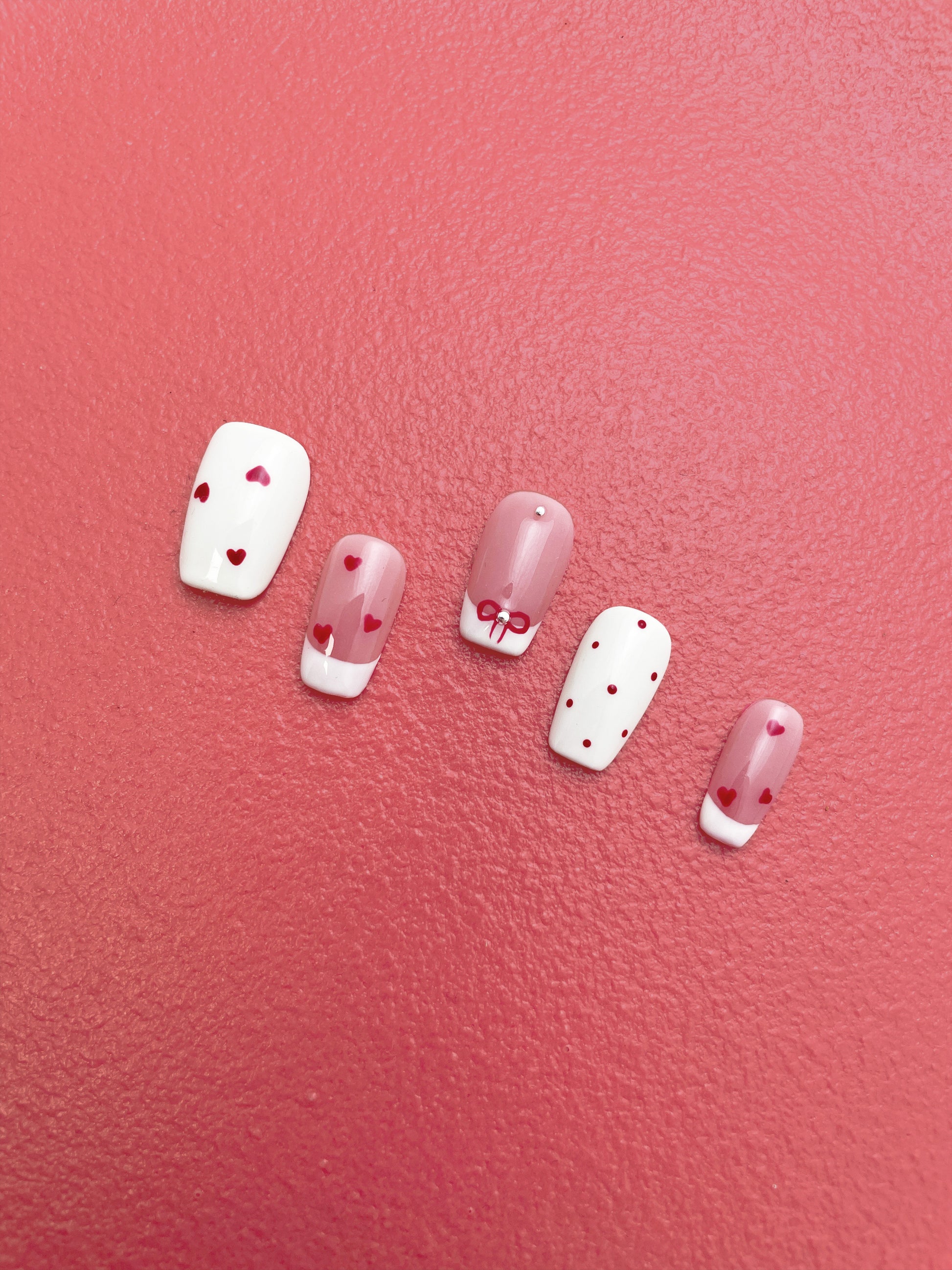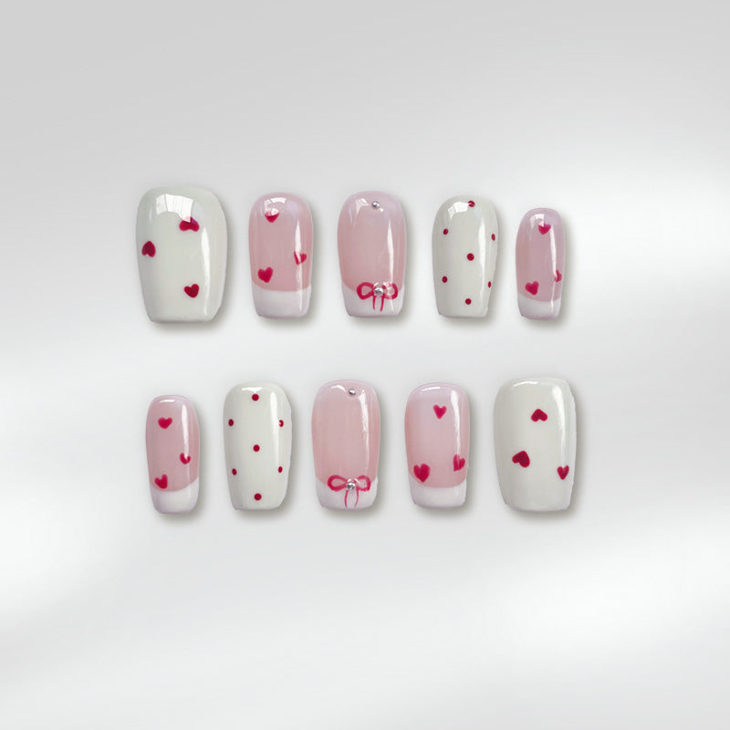 Tiny hearts and hand-drawn bows whisper soft little secrets.