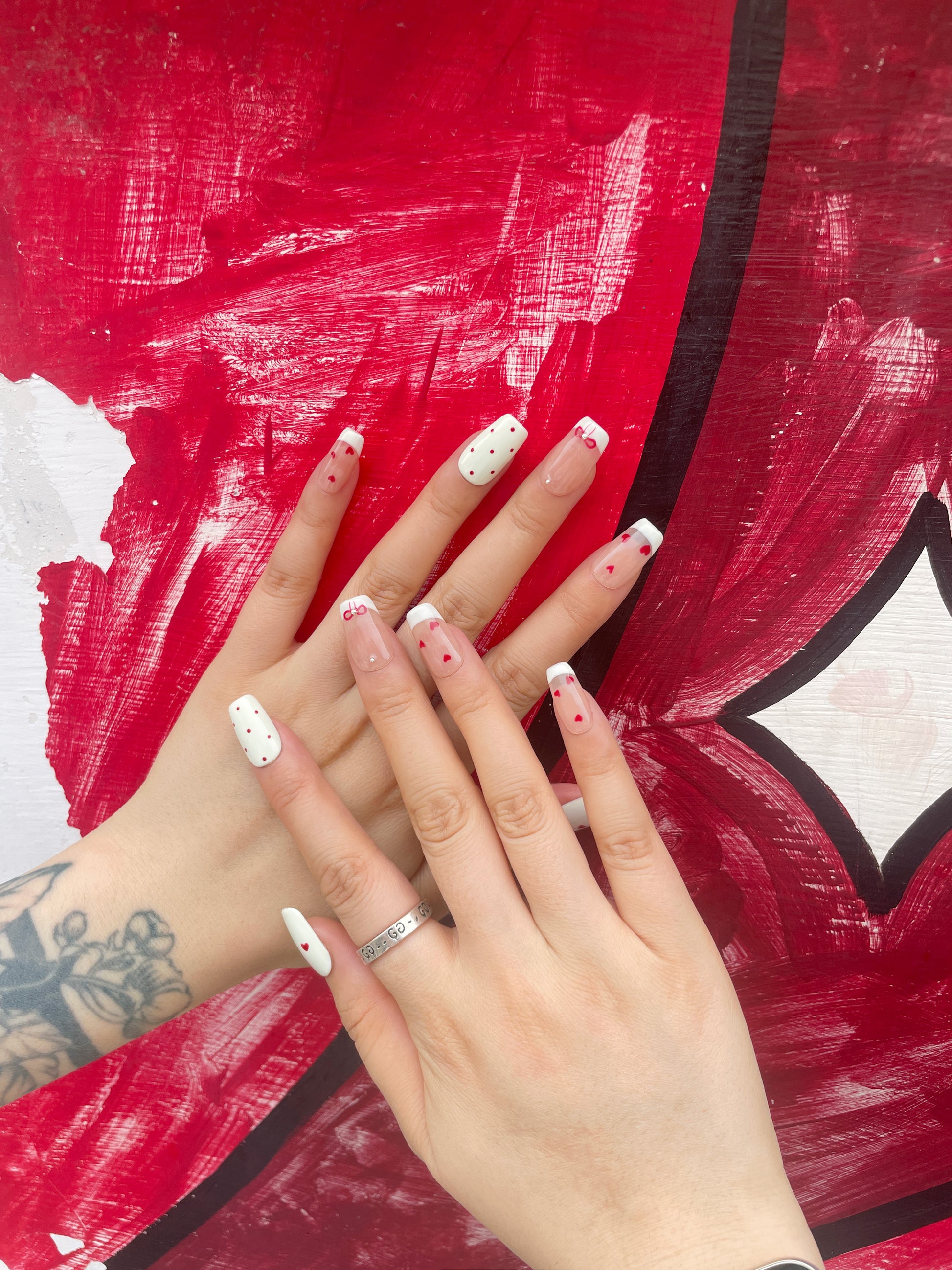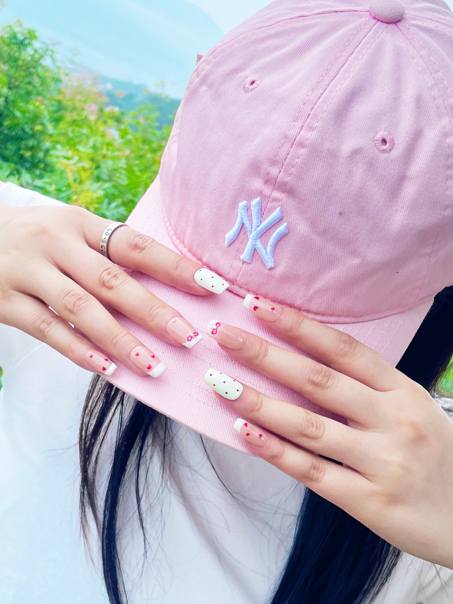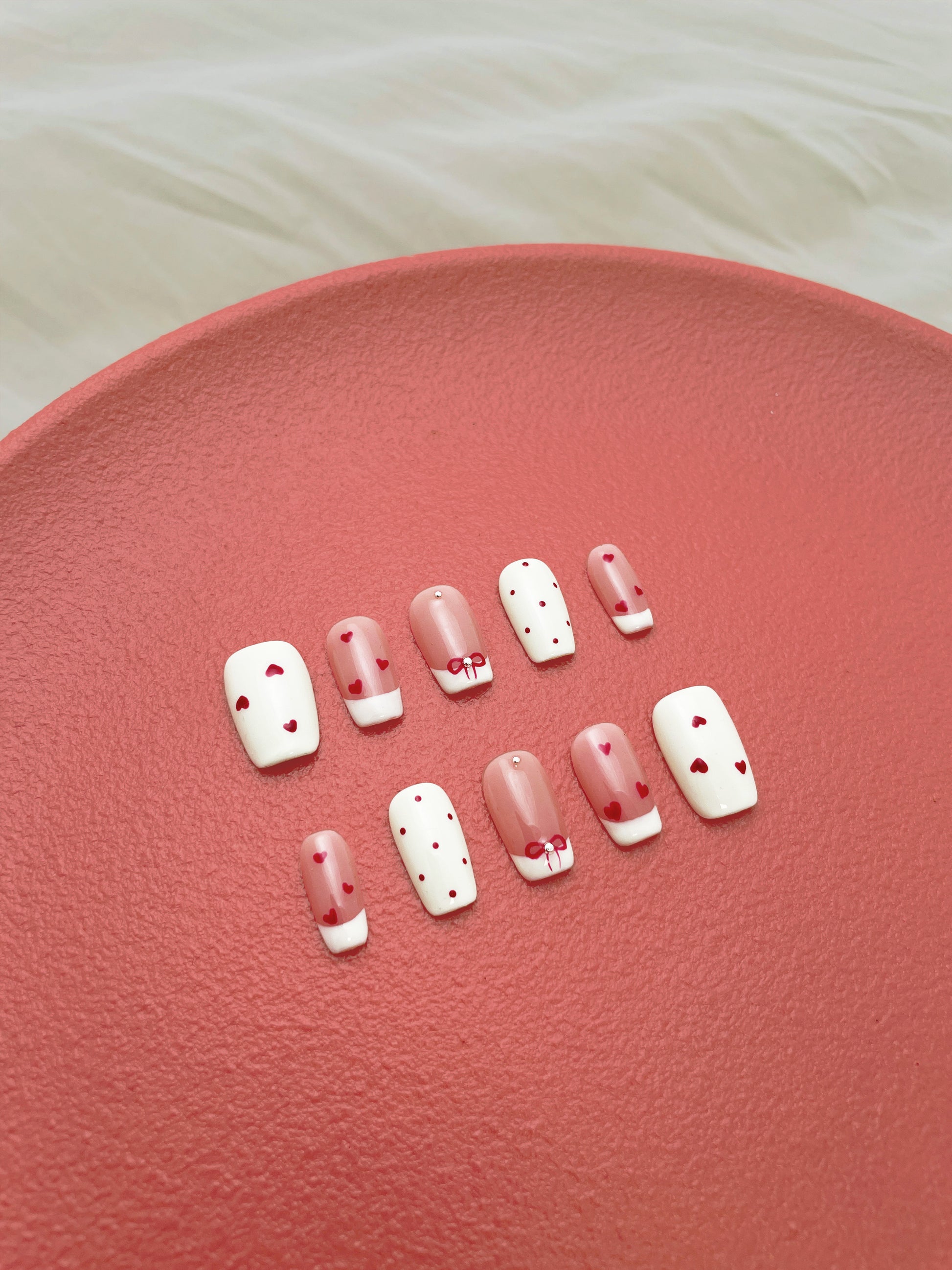 Tiny hearts and hand-drawn bows whisper soft little secrets.